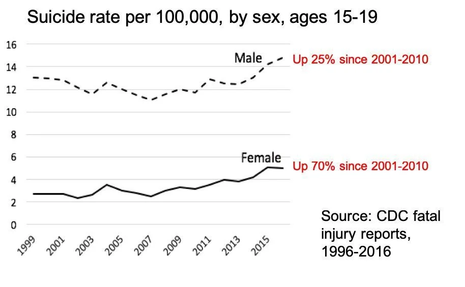 Rising rates of depression and suicide among teens.